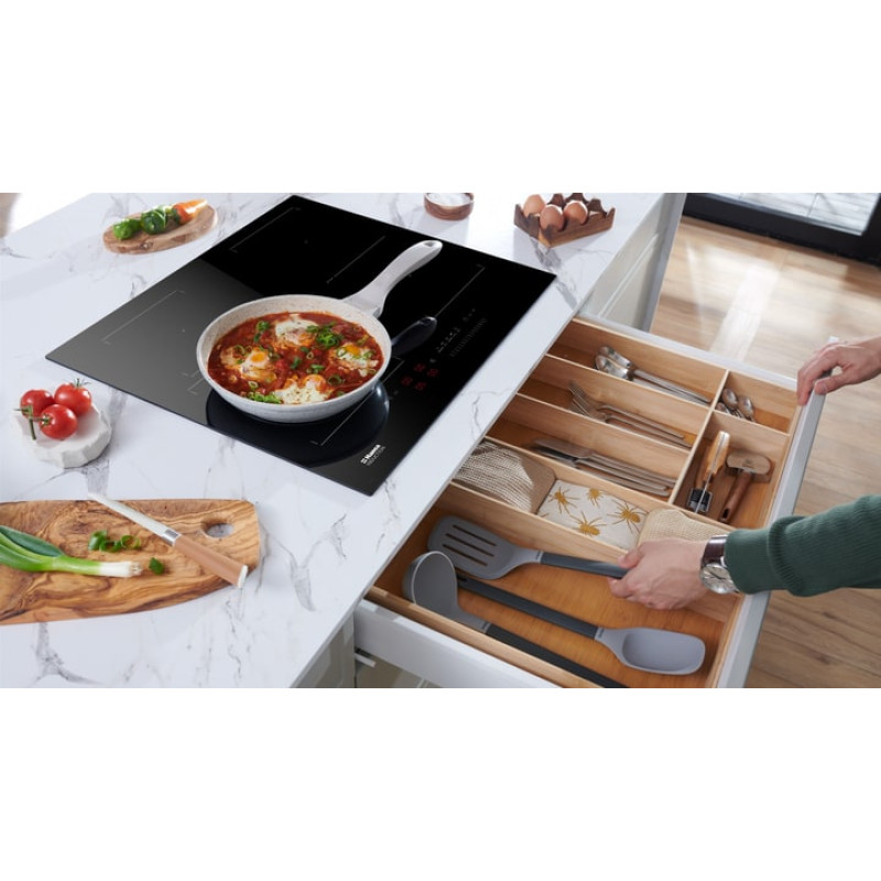 | Функції | пауза, функція підтримки тепла, звуковий таймер, датчики встановленого посуду, таймер автоматичного вимкнення, короткочасне збільшення потужності (Booster), автоматичне об'єднання зон нагрівання, автоматичне визначення зони нагріву (Hob and Go), сенсор (D |