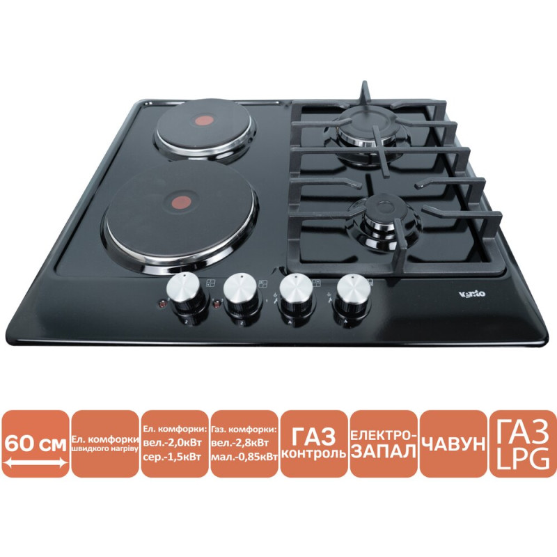 Основні характеристики варильної поверхні комінованої (газ + електрика) HG622 B3 S (BK) від ТМ Ventolux: