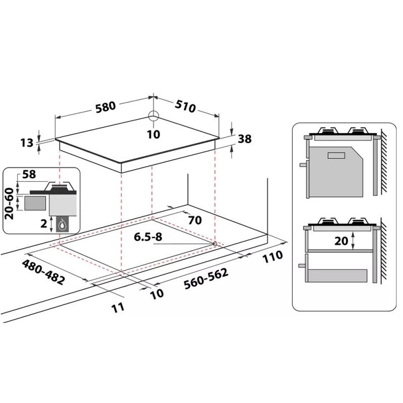 | Розміри для вбудовування | 560-562 мм х 480-482 |