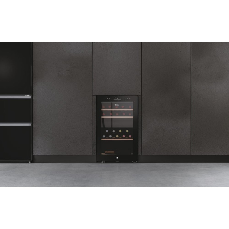 | Можливості | антивібраційна система, вбудована ручка, контроль вологості, перенавішування дверей, функція запам'ятовування температури при вимкненні живлення, Wi-Fi управління через мобільний додаток hOn, сканер винних етикеток Vivino у мобільному додатку hOn |