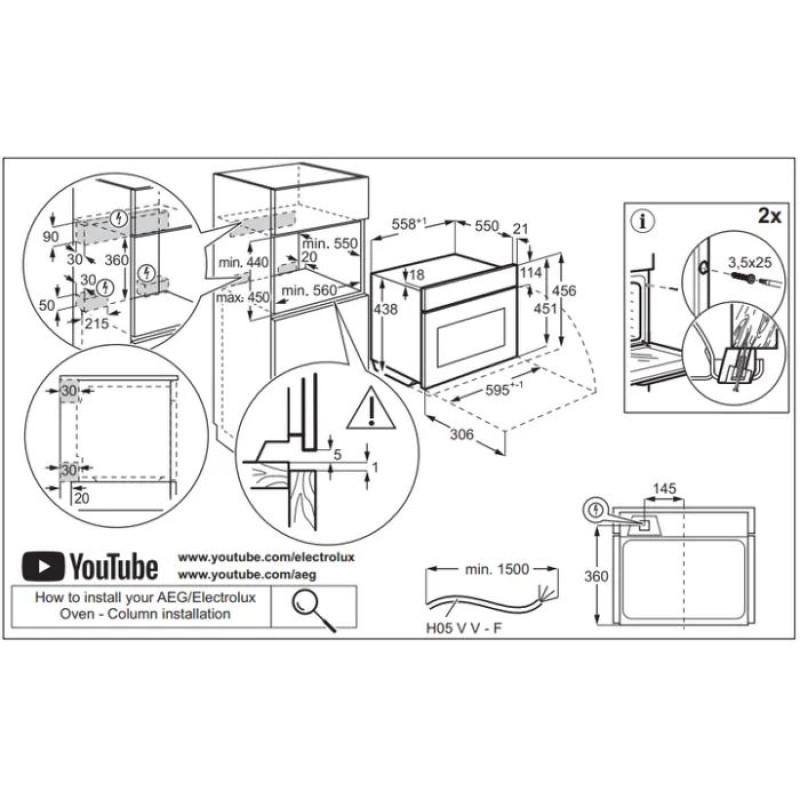 | Розміри для вбудовування ( ВхШхГ ) | 450 × 560 × 550 мм |