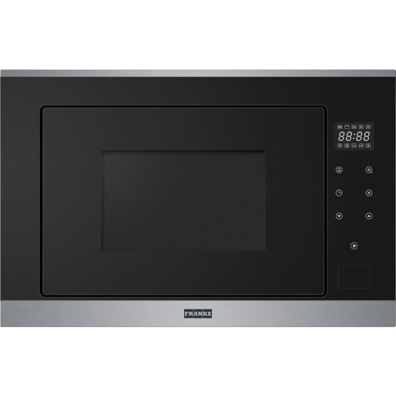 Franke 131.0627.471 — вбудована мікрохвильова піч об’ємом 25 л з потужністю НВЧ 900 Вт і грилем 1000 Вт. Має сенсорне керування, дисплей, 8 автоматичних програм, функції розморожування за часом або масою, таймер до 95 хвилин. Діаметр поворотної тарілки — 31,5 см, внутрішнє покриття — нержавіюча сталь. Доступні режими: НВЧ, гриль, НВЧ + гриль. Підходить для вбудовування в кухонний гарнітур.