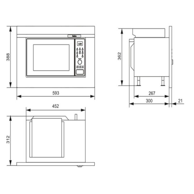 | Функції | Гриль/(900 Вт), Освітлення, Мікрохвилі/(700 Вт), Розморожування за вагою, Блокування від дітей, Функція Комбі (гриль та мікрохвилі), Швидкий старт |