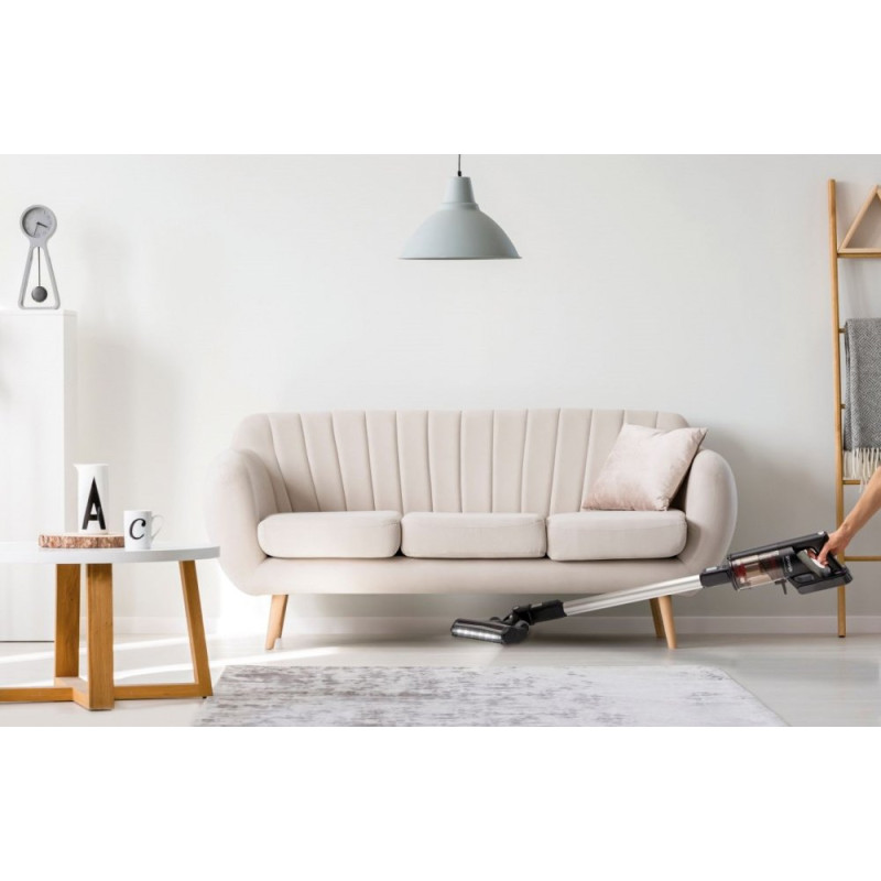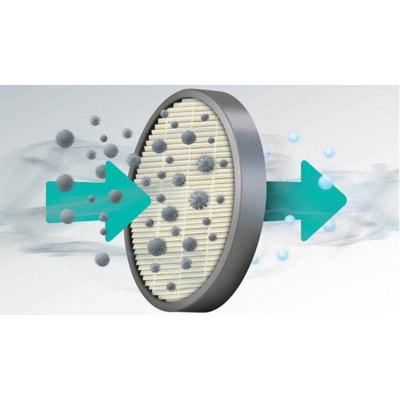 Не потрібно під’єднувати пилосос до зарядної станції. Одним рухом вийміть акумулятор і заряджайте його де зручно. Крім того, якщо придбати додатковий акумулятор, це надасть можливість використовувати пилосос, доки перший