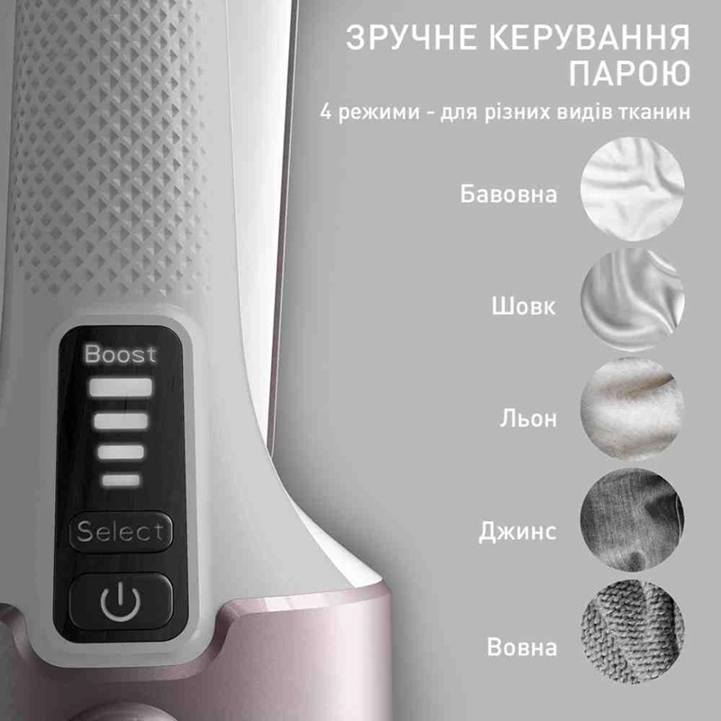 | Особливості | Резервуар для води: Знімний; Використання: Вертикальне + Горизонтальне; Час нагрівання: 25 секунд; Легке перемикання між горизонтальним і вертикальним режимами; Блискавичний час нагрівання; Експертне розгладження складок; Легке наповнення резервуара та тр |