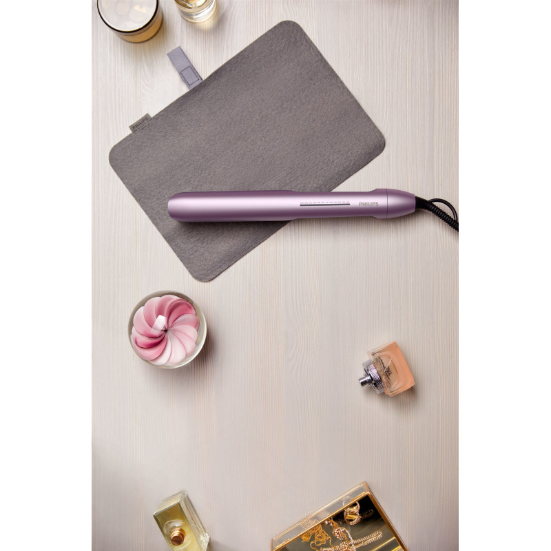 | Особливості | Технологія ThermoShield Плаваючі пластини Керамічні пластини з олією арганії Швидке нагрівання Підсвічування дисплея Автоматичне вимкнення після 30 хвилин Петелька для підвішування Шнур на шарнірі Блокування пластин Індикатор готовності до роботи |
