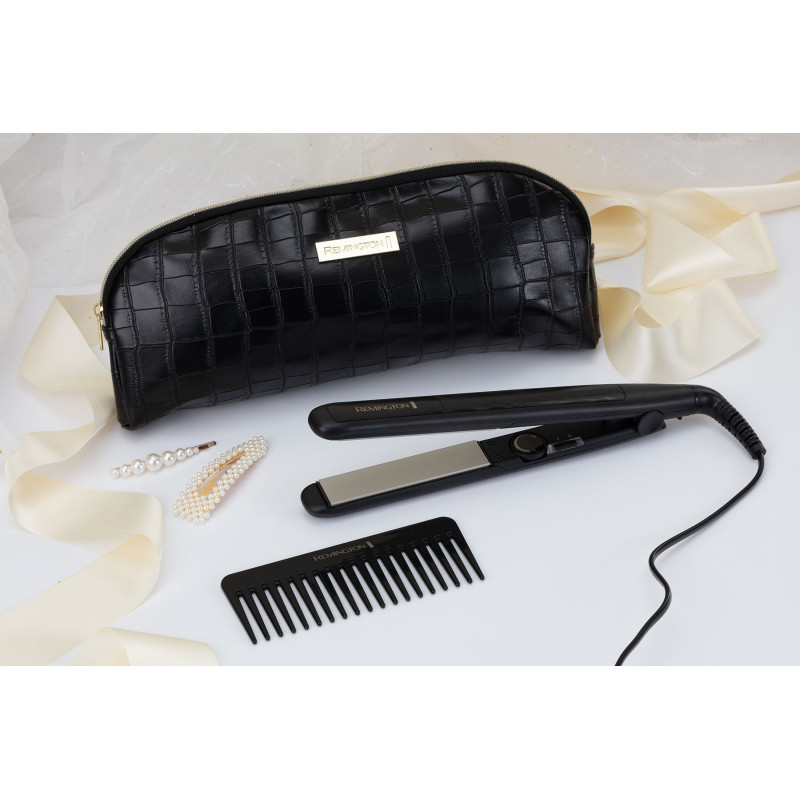 Стильний набір S3505GP - це ідеальний подарунок для вас або ваших близьких і друзів до будь-якого свята. У комплекті: випрямляч для волосся з усіма сучасними функціями, сумочка для зберігання, виконана з преміум-матеріалів, гребінець і 2 трендові шпильки для волосся.