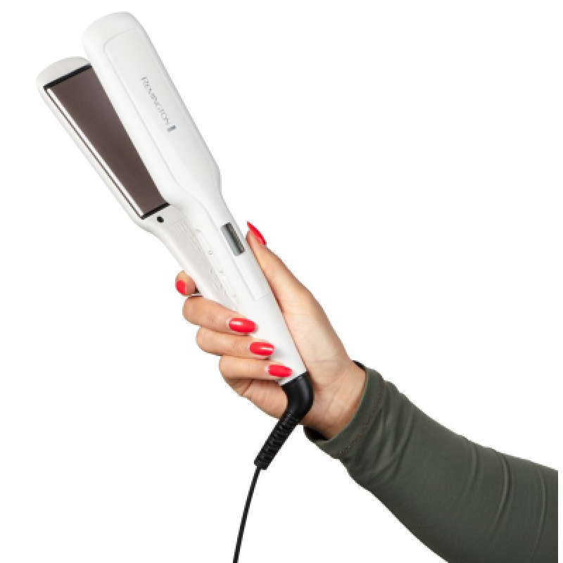 77% надшироких* пластин означають, що за один прохід можна захопити більше волосся від коренів до кінчиків для швидшого та стійкішого результату. Ця конструкція ідеально підходить для розгладження та контролю всіх типів волосся, але особливо добре підходить для укладання товстого волосся.