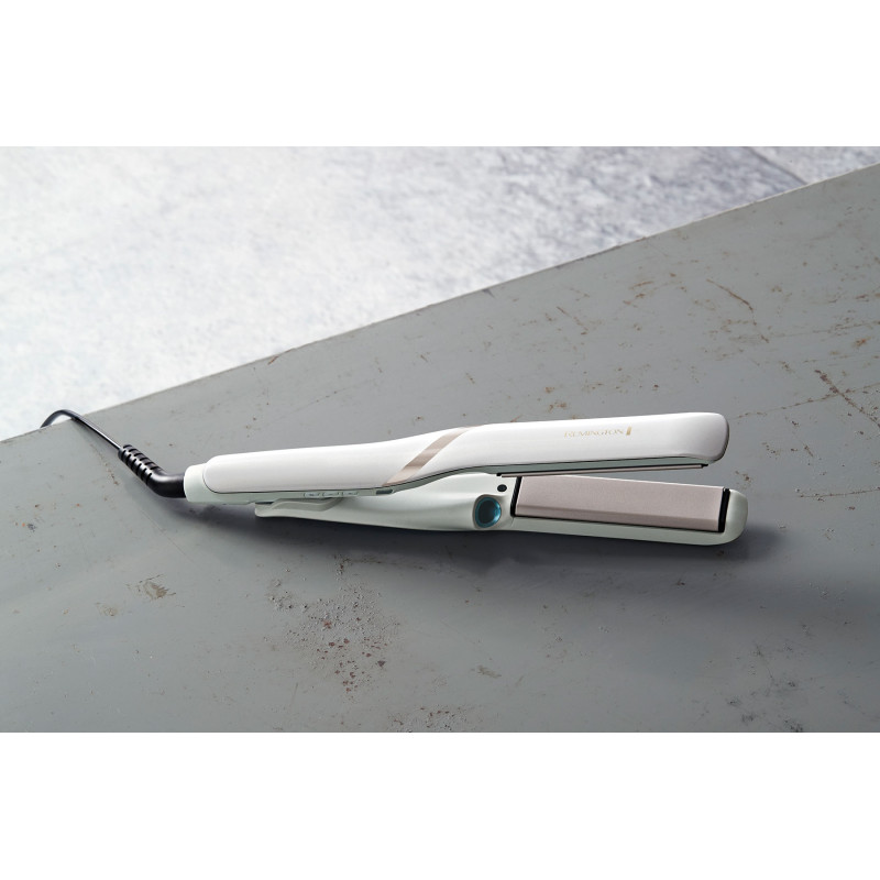 Прилад також має зручне цифрове регулювання температури, 5 значень до 230 °C. Це дозволить кожній налаштувати прилад саме під свій тип волосся, а функція блокування температури дасть вам абсолютну впевненість під час стайлінгу. Пластини випрямляча оснащені керамічним покриттям Moisture Lock, яке ефективно переносить кондиціонуючі мікрочастинки на ваше волосся. Тим самим допомагаючи зберегти ідеальний баланс вологи.