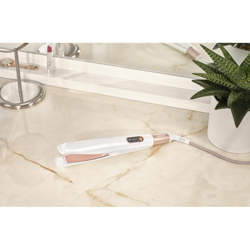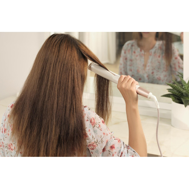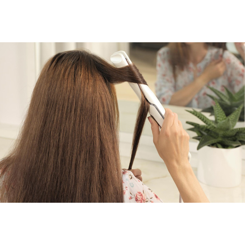 | Особливості | Випрямляч і плойка для випрямлення та завивки волосся; Найкращий догляд для всіх типів волосся; Пластини з керамічним покриттям Twisted; Цифровий дисплей з регулятором температури; Захисне блокування від небажаного відкриття; готовність до використання че |