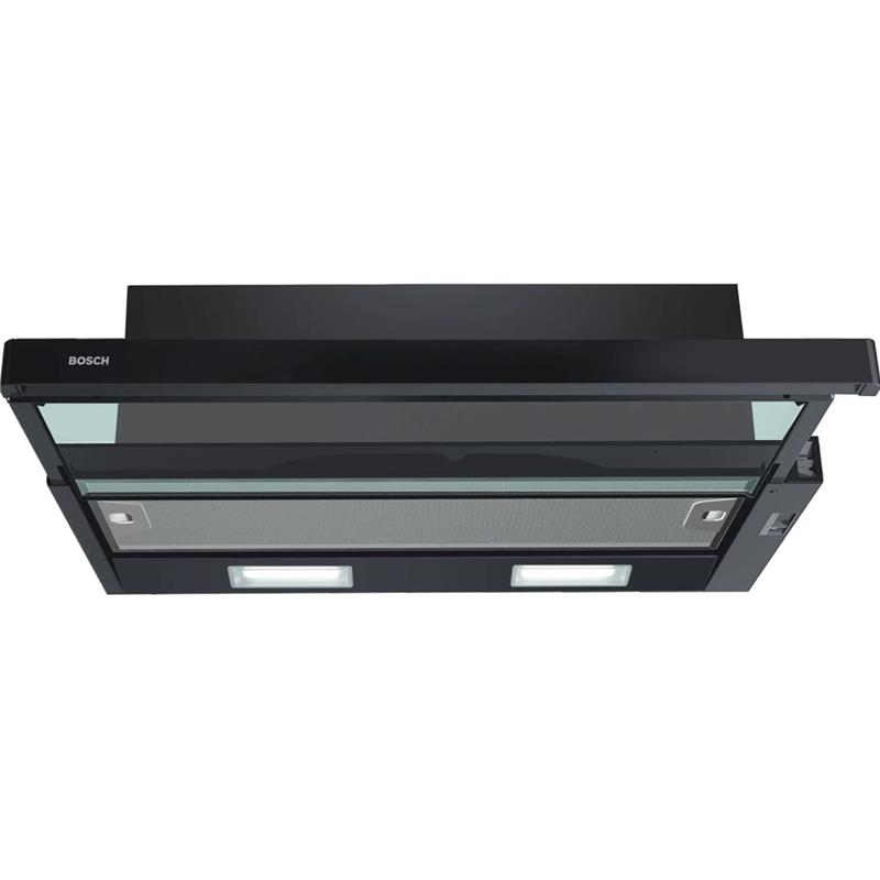 Телескопічна витяжка Bosch DFT63CA61T шириною 60 см — компактне вбудоване рішення для сучасної кухні в чорному кольорі. Забезпечує продуктивність до 310 м³/год у режимі відведення повітря та 220 м³/год у рециркуляції. Три ступені потужності та механічне керування дозволяють легко регулювати інтенсивність. Два LED-світильники по 4 Вт створюють яскраве освітлення робочої зони. Алюмінієвий жировий фільтр легко миється в посудомийній машині.