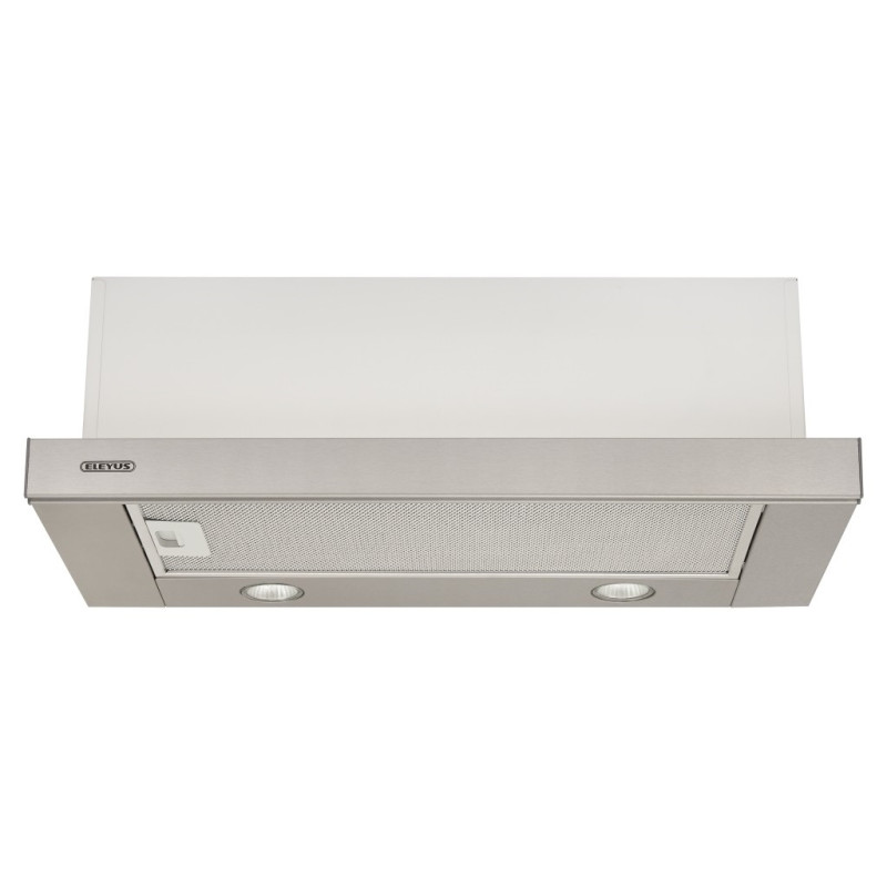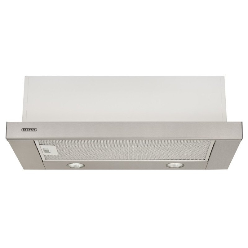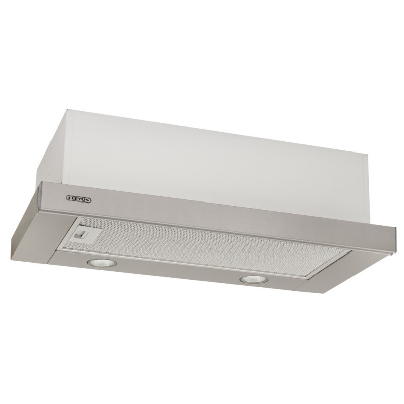 Витяжка обладнана двома галогенними лампами потужністю 35 Вт кожна. Механічне клавішне управління витяжкою є простим, зручним і надійним. На корпусі розташовано дві клавіші - перемикач швидкостей (2 швидкості) та клавіша ввімкнення/вимкнення світла. Корпус витяжки Eleyus BREEZE 700 50 IS є класичним для телескопічних витяжок ТМ ELEYUS. Витяжка представлена в розмірі 50 см.
