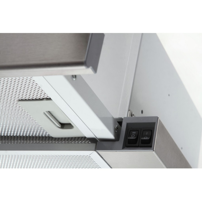 Телескопічна кухонна витяжка Storm 700 50 IS володіє широким рядом переваг, які не залишать байдужим навіть найвибагливішого покупця. Перш за все слід зазначити, що висота вбудованої частини становить лише 138 мм, що дозволить легко вмонтувати витяжку в стандартну шафку для вбудованої техніки. Однак, конструктори ТМ ELEYUS зробили практично неможливе - помістили в цей надкомпактний корпус високопотужну турбіну продуктивністю 700 м³/год, що не має аналогів на сучасному ринку кухонних витяжок. Сучасний і надійний висувний механізм прикрасить кухню будь-якого стилю і дизайну, а висувна телескопічна панель із нержавіючої сталі високої якості забезпечить додаткове втягування. У своїй продукції ми застосовуємо високотехнологічні телескопічні напрямні нового покоління, відмінними рисами яких є нульове потрапляння на них жиру і легкий хід панелі. Storm 700 50 IS пофарбована високоякісною порошковою фарбою, що не тільки надає їй привабливого зовнішнього вигляду, але і захищає метал від корозії і робить його надзвичайно довговічним.