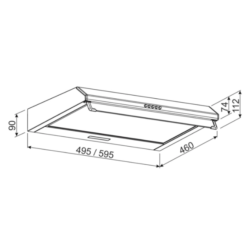 Тип витяжки: Плоска Тип монтажу: У кухонну шафу Продуктивність: 380 куб.м/год Розмір (ШхВхГ): 59.5 х 9 х 46 см