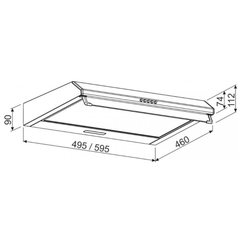 Тип витяжки: Плоска Тип монтажу: Настінний Продуктивність: 380 куб.м/год Розмір (ШхВхГ): 59.5 х 9 х 46 см