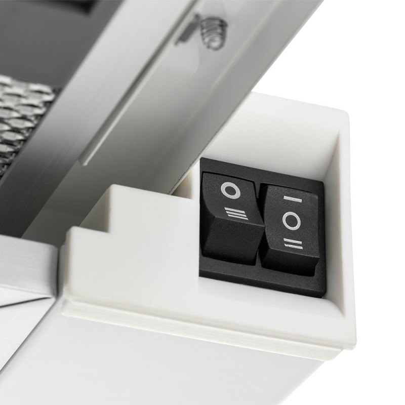Проста й інтуїтивно зрозуміла панель управління забезпечить комфорт експлуатації витяжки. Ергономічні механічні клавіші допоможуть вам швидко перемикатися між швидкостями та режимами роботи, а також вмикати підсвічування.