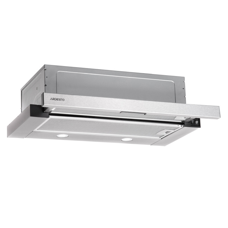 Телескопічна витяжка ARDESTO завширшки 60 см вирізняється компактністю і продуманою конструкцією, забезпечуючи ефективне очищення повітря. Завдяки висувній панелі модель легко інтегрується в кухонний гарнітур, а в робочому положенні охоплює всю варильну поверхню, вловлюючи пару та запахи. Витяжка суцільнометалева, навіть видима поверхня, що зумовлює міцність і довговічність.