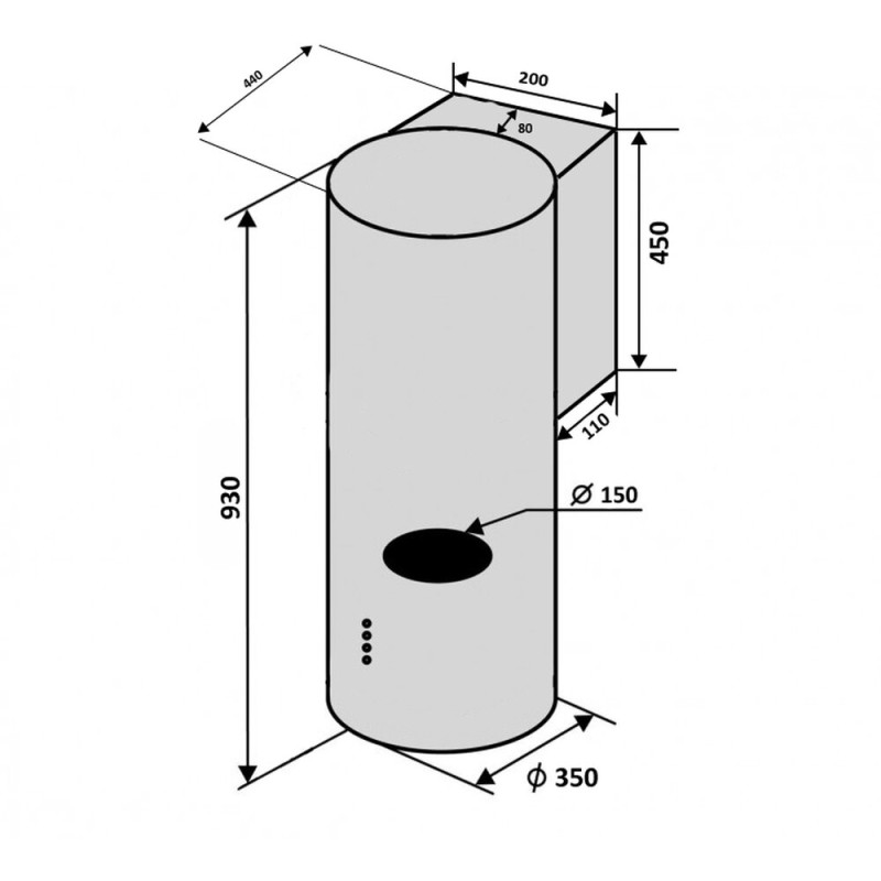 | Діаметр повітропроводу, мм | 150 |