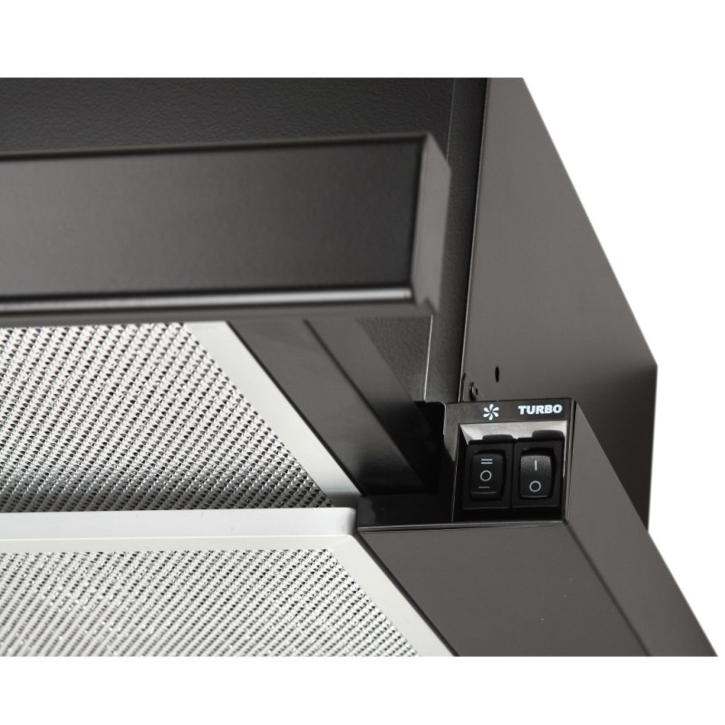 Телескопічна кухонна витяжка Storm 700 60 BL володіє широким рядом переваг, які не залишать байдужим навіть найвибагливішого покупця. Перш за все слід зазначити, що висота вбудованої частини становить лише 138 мм, що дозволить легко вмонтувати витяжку в стандартну шафку для вбудованої техніки. Однак, конструктори ТМ ELEYUS зробили практично неможливе - помістили в цей надкомпактний корпус високопотужну турбіну продуктивністю 700 м³/год, що не має аналогів на сучасному ринку кухонних витяжок. Сучасний і надійний висувний механізм прикрасить кухню будь-якого стилю і дизайну, а висувна телескопічна панель із нержавіючої сталі високої якості забезпечить додаткове втягування. У своїй продукції ми застосовуємо високотехнологічні телескопічні напрямні нового покоління, відмінними рисами яких є нульове потрапляння на них жиру і легкий хід панелі. Storm 700 60 BL пофарбована високоякісною порошковою фарбою, що не тільки надає їй привабливого зовнішнього вигляду, але і захищає метал від корозії і робить його надзвичайно довговічним.