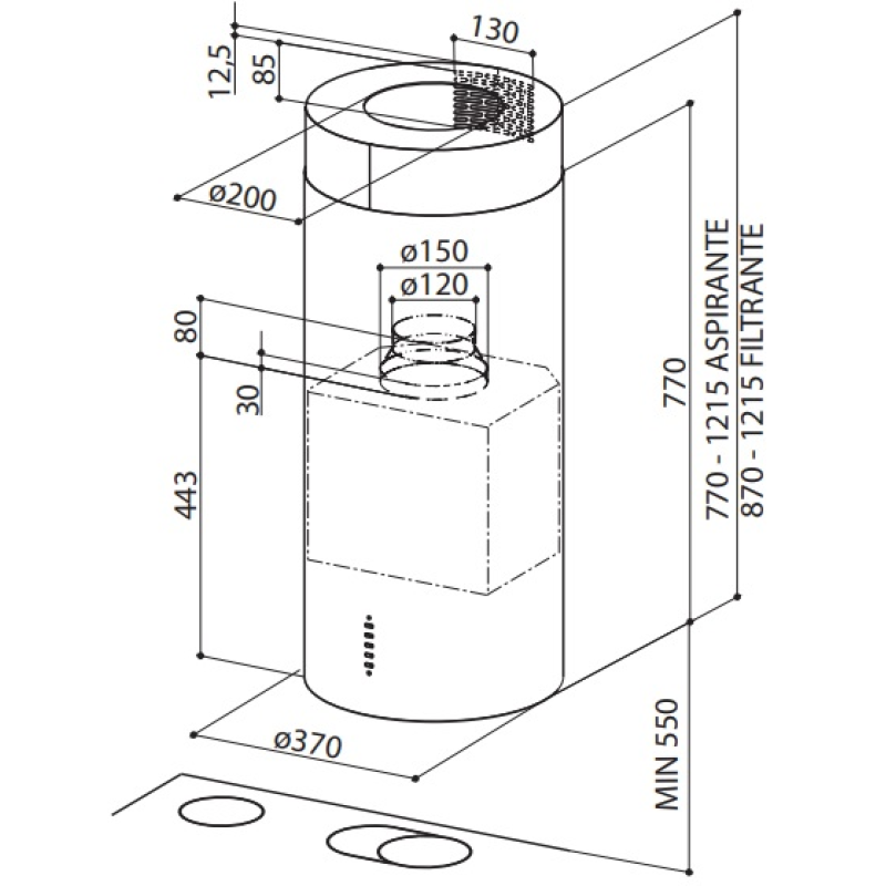 Острівна витяжка Faber Cylindra Isola Ev8 X A37 – це стильне рішення для сучасної кухні. Завдяки потужності до 1103 м³/год ефективно усуває пар і запахи. Компактний 37 см корпус із нержавіючої сталі, 3 швидкості + Турбо, 2 LED-лампи та електронне управління забезпечують комфортне використання.