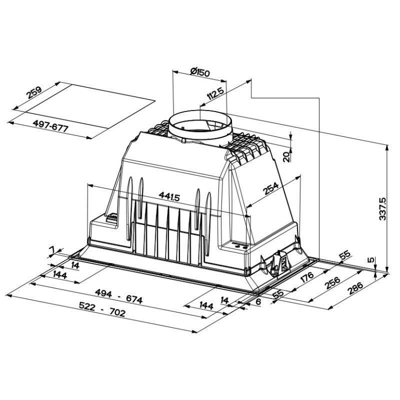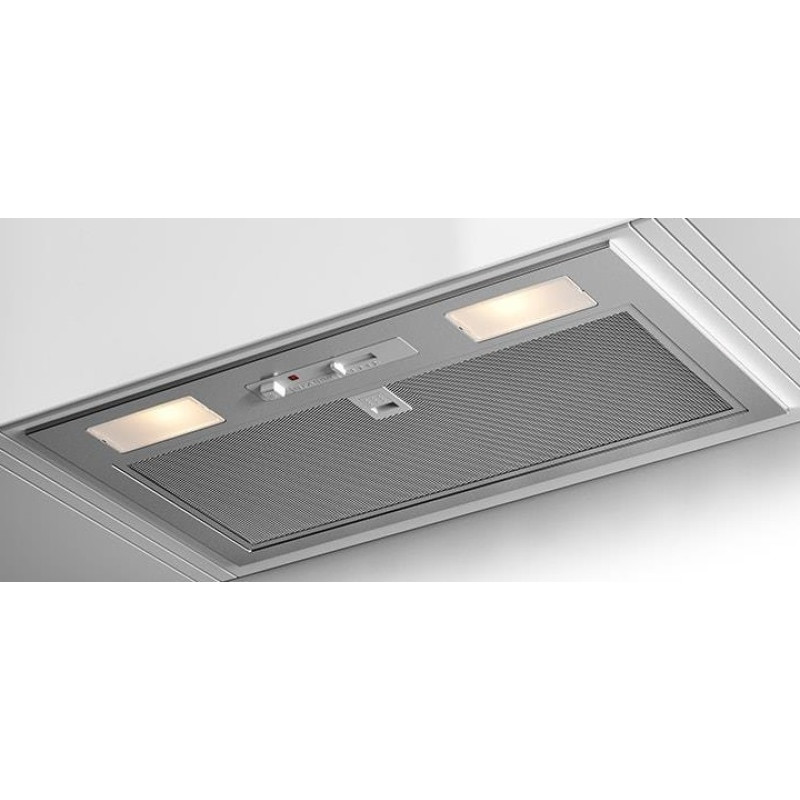 Естетично виконаний зі смаком цей вбудований блок може бути встановлений у всіх типах настінних кухонних шаф. Привабливий зовнішній вигляд поєднується з високою ефективністю витяжки та компактними розмірами, що дозволяє розмістити витяжку навіть у дуже тонких навісах.