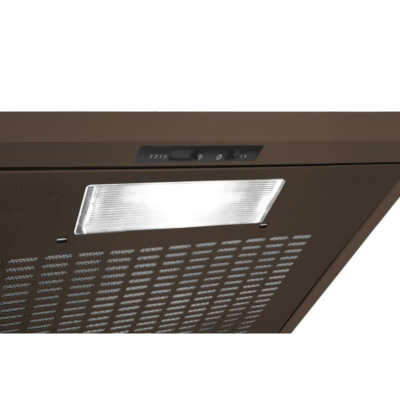 Компактна витяжка шириною 50 см забезпечує продуктивність до 170 м³/год та працює у двох режимах: відведення повітря і рециркуляція. Оснащена трьома швидкостями, слайдерним управлінням та LED-освітленням.