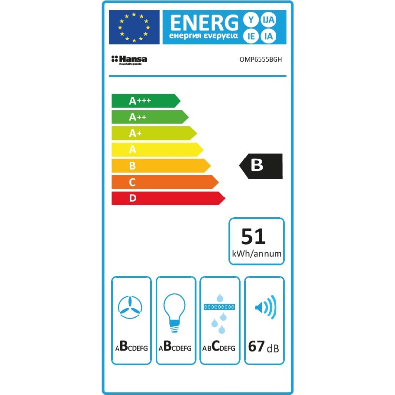 Вбудована витяжка Hansa OMP6553/55BGH шириною 55 см з продуктивністю до 500 м³/год. Чорний корпус і сенсорне управління з жестами забезпечують сучасний стиль і легкість використання. Три швидкості вентилятора, LED-підсвітка, таймер та антизворотний клапан створюють комфортну кухонну атмосферу.
