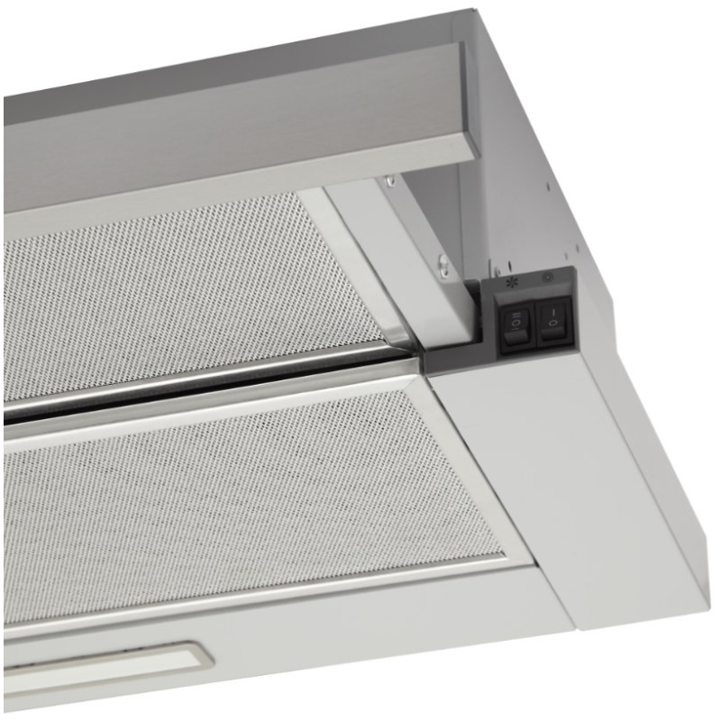 Телескопічна витяжка призначена створювати домашній затишок. Компактний корпус чудово монтується в кухонну шафку шириною 60 см, видимою залишається лише висувна телескопічна панель з нержавіючої сталі. Вона забезпечує додаткове втягування повітря та залишається легкою в догляді.