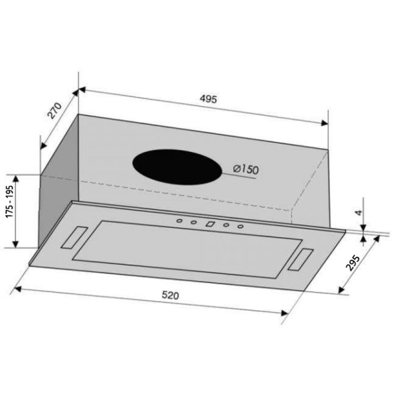 Вбудована витяжка для кухні PUNTO 52 BG (950) PB - чудове рішення для великих, середніх та малих кухонь. Ця модель має доступну ціну та високу продуктивність. Ширина моделі всього 52 см, тому її можна використовувати для монтування в підвісну тумбочку шириною 60 см. А видимим залишається лише низ техніки, який пофарбований в чорний колір і алюмінієвий фільтр для вловлювання жиру.