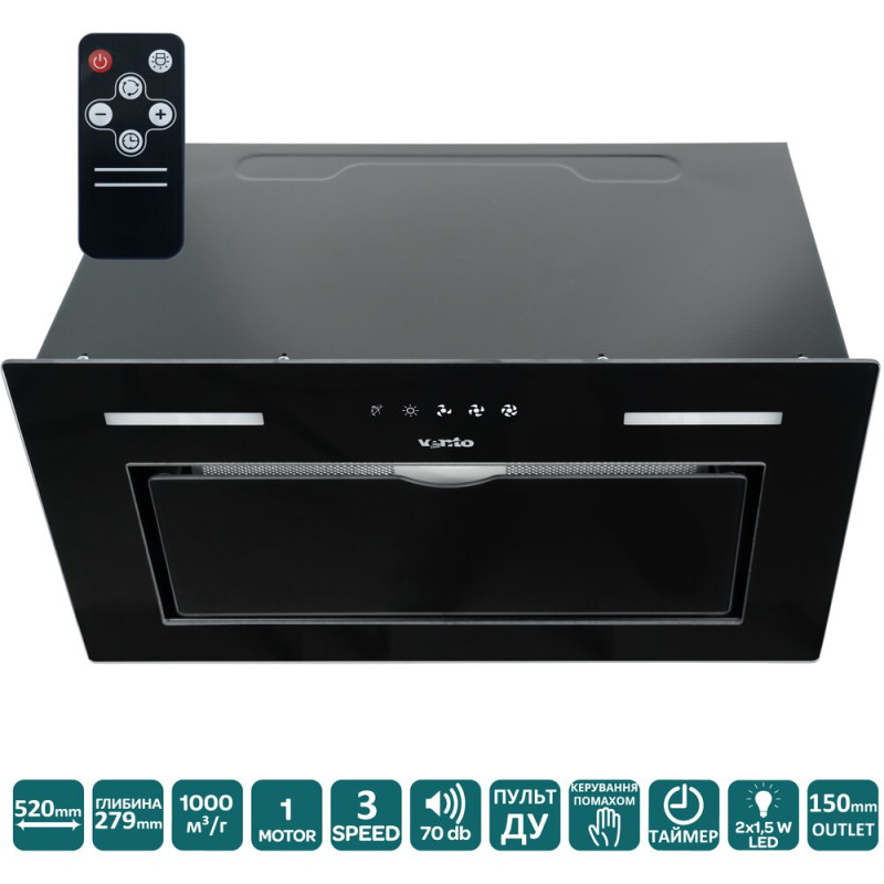 Ключові параметри кухонної витяжки (врізної) PUNTO 520/279 BGG (1000) MS від Вентолюкс: