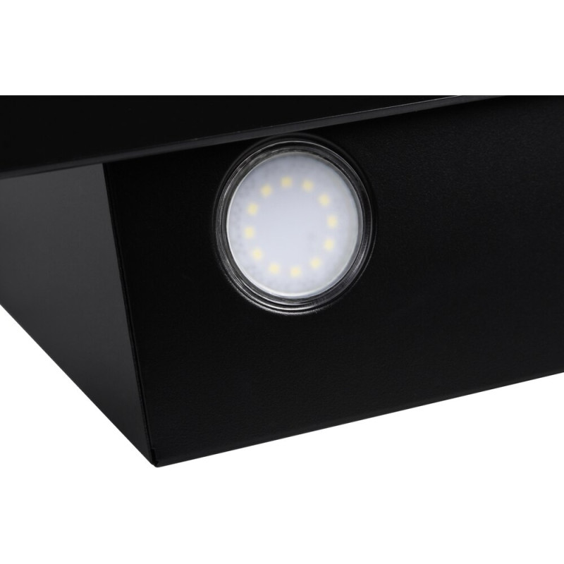 Лицева частина витяжки TIVOLI 60 BK (950) PB виготовлений зі скла в елегантному чорному кольорі. На фасаді розташований люк, який займає більшу частину площі витяжки, а також зручне кнопочне управління. Воно розміщене безпосередньо під люком. А в нижній частині витяжки розміщені дві LED лампи, які забезпечують відмінне освітлення зони під витяжкою.