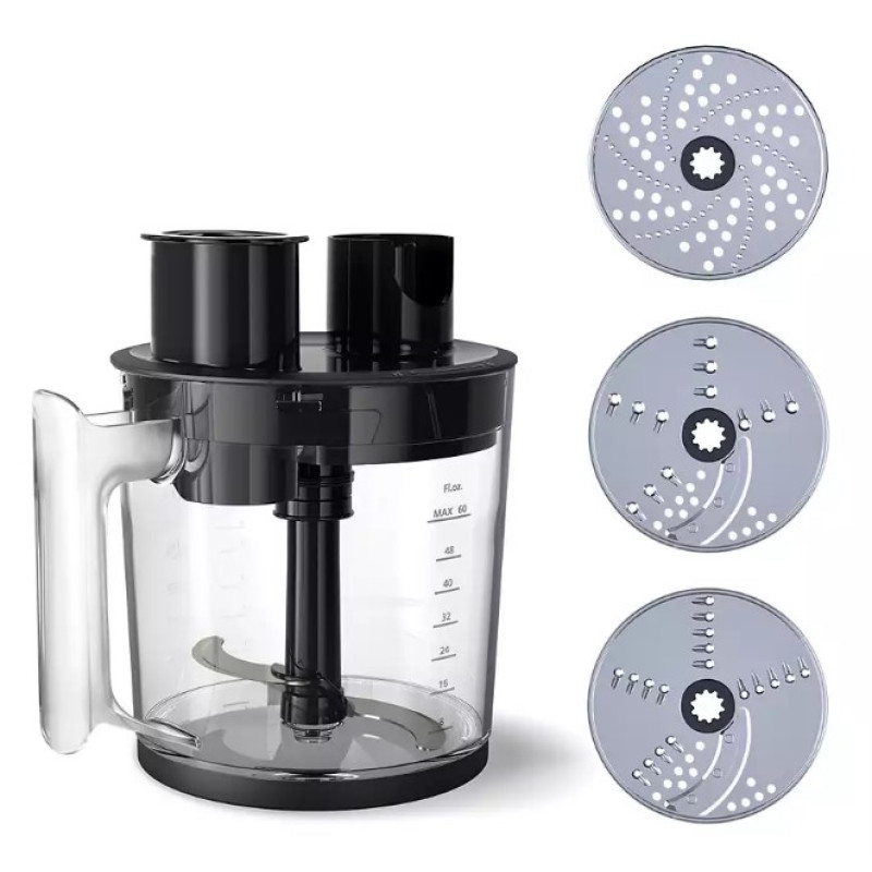 Прикріпіть компактний подрібнювач, щоб нарізати цибулю та зелень, подрібнити горіхи та інше. Чаша об'ємом у 0,5 літра підійде для всіх дрібних завдань, які можуть виникнути під час приготування їжі.