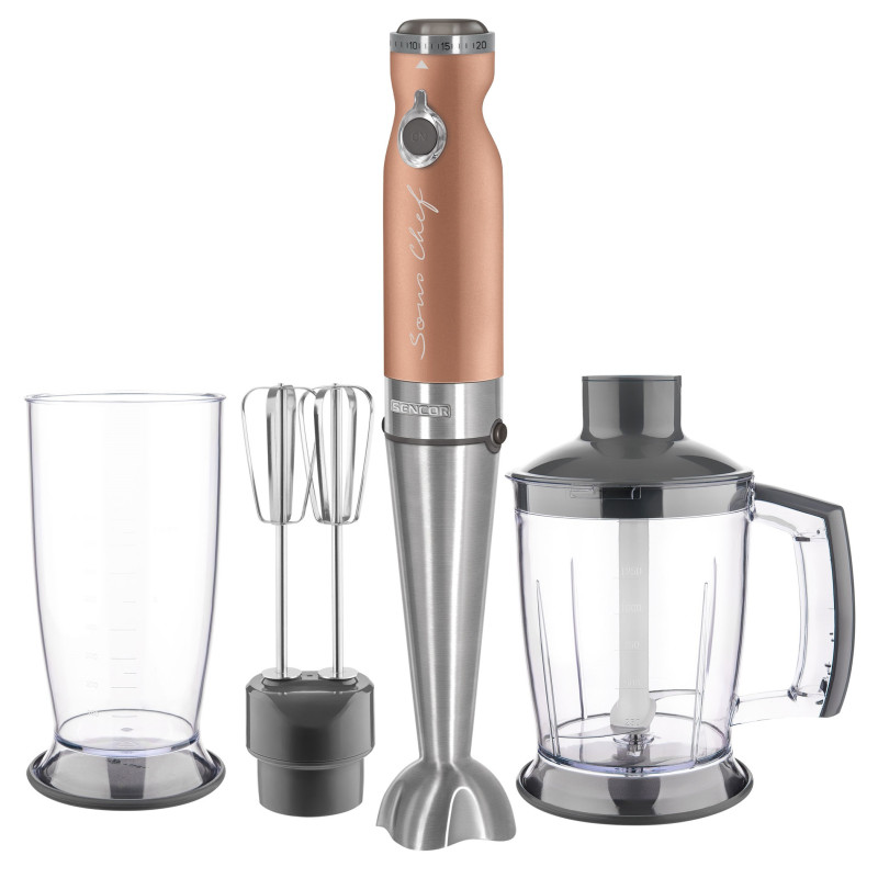 Подвійний вінчик легко збиває креми, майонез, заправки, збиті вершки, яєчні білки та різноманітне десертне тісто. Його віночки виготовлені з гігієнічної нержавіючої сталі, що гарантує тривалий термін служби. Sencor також додав ємність до віночка та змішувальної головки, щоб зробити процес ще простішим. Ємність об'ємом 800 мл ідеально підходить для збивання і перемішування.