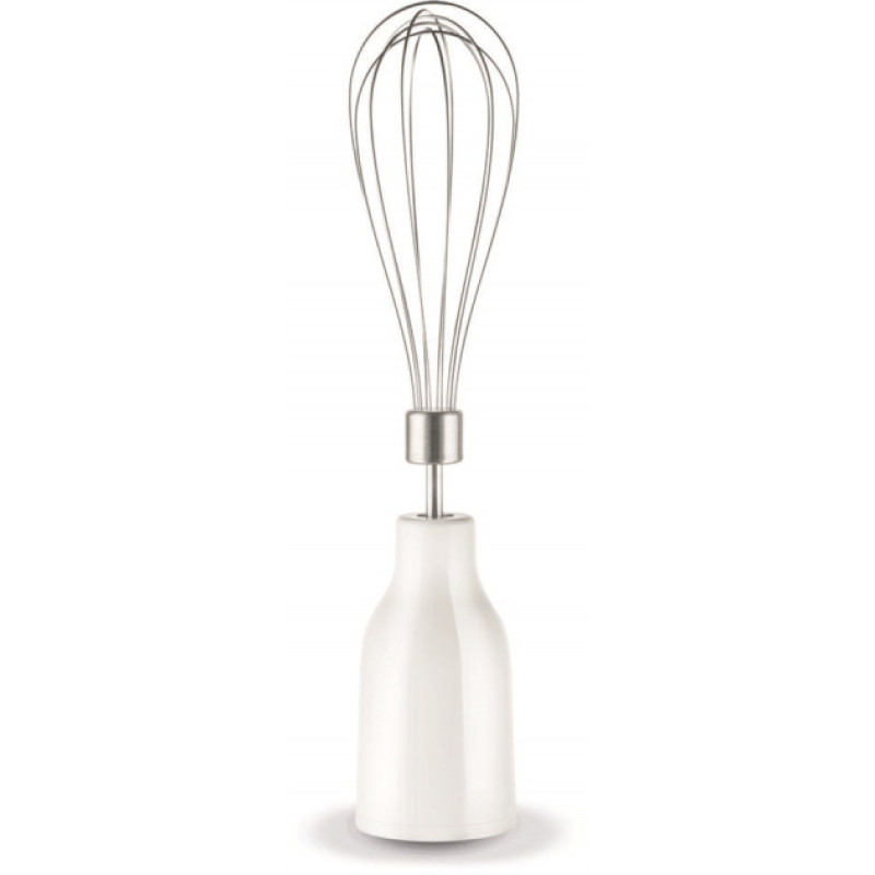 Містка мірна склянка ємністю 800 мл ідеально підходить для збивання та змішування рідких продуктів. Вінчик з редуктором з нержавіючої сталі дозволить швидко і ефективно перетворити вершки в ніжний крем, збити яєчні білки, а також приготувати бісквіт або рідке тісто на млинці. Зміна робочих елементів відбувається в один дотик, досить просто легко провернути корпус і від'єднати ніжку блендера.