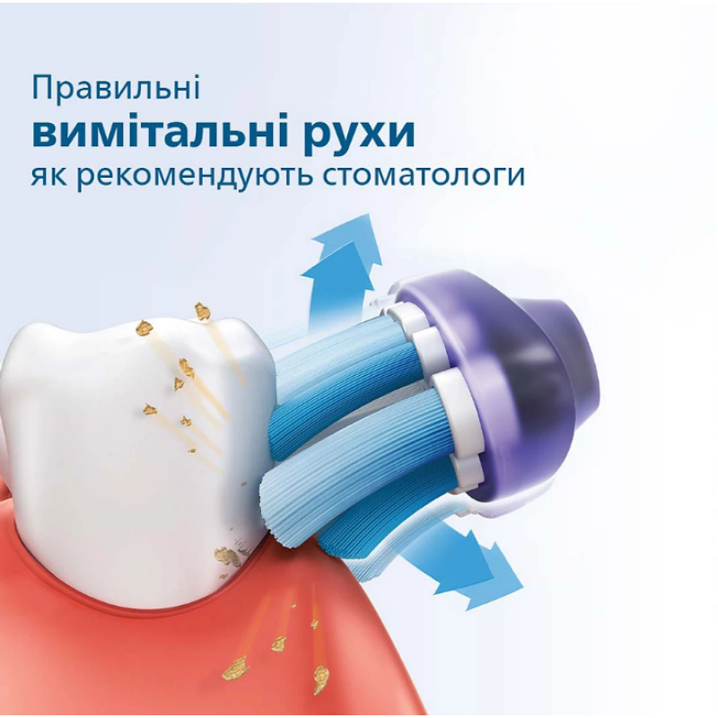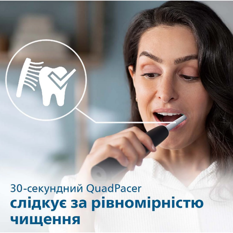 | Особливості | Індикатор показує стан батареї QuadPacer та SmarTimer Ручка щітки вібрує, попереджаючи користувача про надмірний тиск |