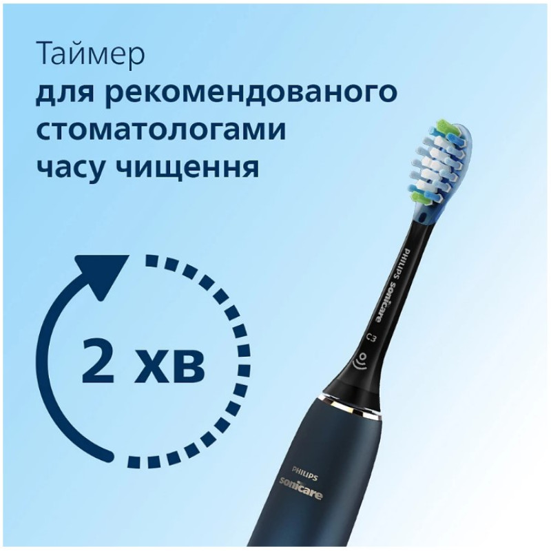 | Комплектація | Ручка серії Sonicare 9000 Насадка-щітка Premium Plaque Defense (C3) Підставка Дорожній футляр |