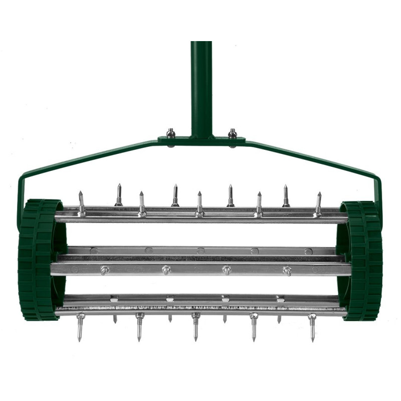 Ручний аератор та роликовий скарифікатор для трави Verto 15G539 – незамінний інструмент у нашому саду. Компактна гвинтова конструкція забезпечує оптимальну жорсткість та комфорт роботи. Аератор оснащений роликом із 27 шипами та зручними колесами, які ще більше полегшують догляд за травою в саду або на газоні.