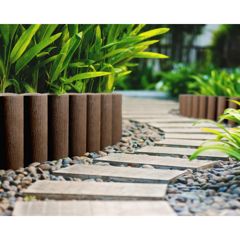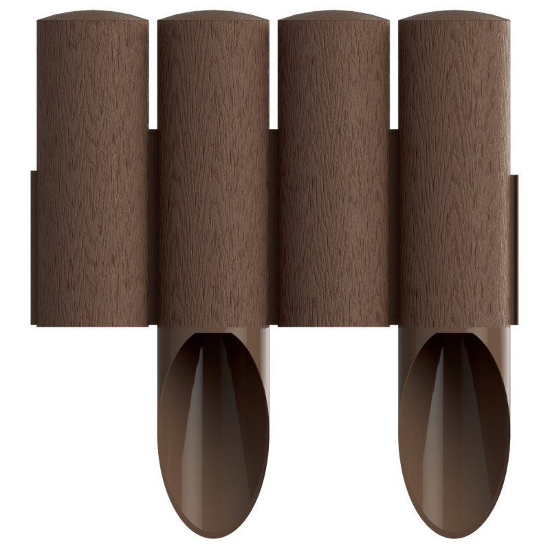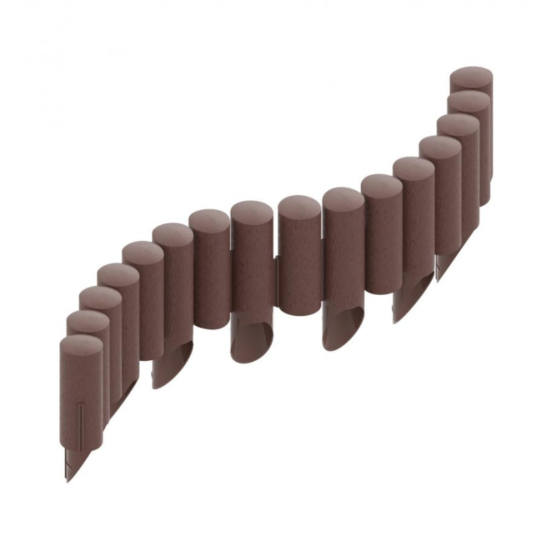 Ідеально відокремлює газон або стежку від городу або квіткових клумб. Конструкція нижньої частини попереджає її руйнування під час вбивання в землю. Текстура поверхні - "під дерево". Не вимагає технічного обслуговування. Стійка до ультрафіолетового випромінювання - стійкий колір, морозостійка. Зручний спосіб з'єднання елементів дозволяє формувати огорожу довільним чином. Кольори: коричневий, зелений, теракот, сірий. Довжина комплекту 2,3 метра.