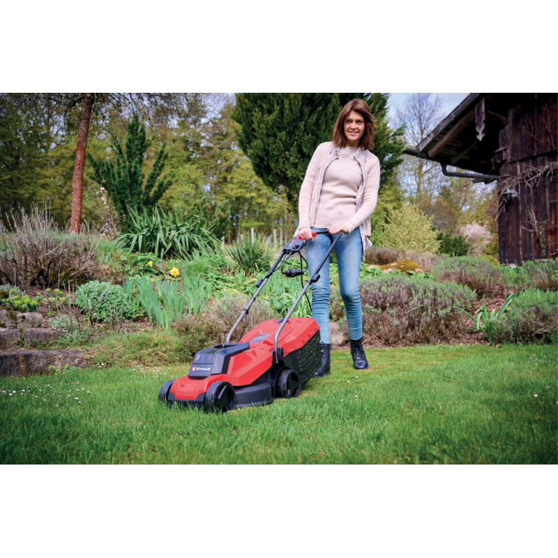 Потужна та маневрена електрична газонокосарка Einhell GC-EM 1000/32 із двигуном 1000 Вт забезпечує якісне косіння навіть високої трави. Завдяки ширині зрізу 32 см і 3-рівневому регулюванню висоти (30–70 мм) вона підходить для ділянок до 300 м². 30-літровий травозбірник, невелика вага (9,2 кг), складна ручка та запобіжник натягу кабелю забезпечують зручність у використанні, зберіганні та транспортуванні.