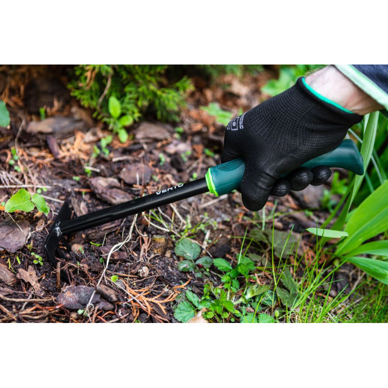 Грабельки VERTO (арт. 15G407) довжиною 340 мм. Дуже корисна під час садівничих робіт. Лезо виготовлене з міцної сталі, стійкої до деформацій. Гумована ручка ергономічної форми зручно міститься в долоні, не вислизаючи, що підвищує комфорт праці.