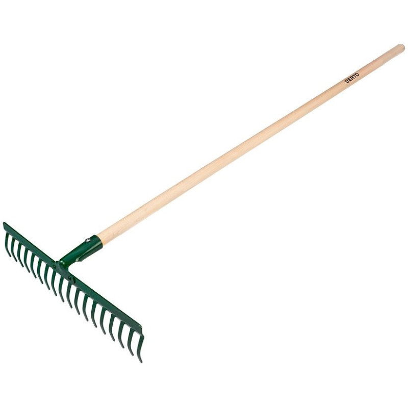 Граблі універсальні прямі, 18 зубців, клепана головка, дерев'яна ручка 15G058 від VERTO - це граблі з 18 практичними зубцями, розташованими на клепаній головці. Дерев'яна пряма ручка забезпечує зручність використання. Граблі марки VERTO характеризуються загальною довжиною 1400 мм. Рекомендуються для багатьох застосувань.