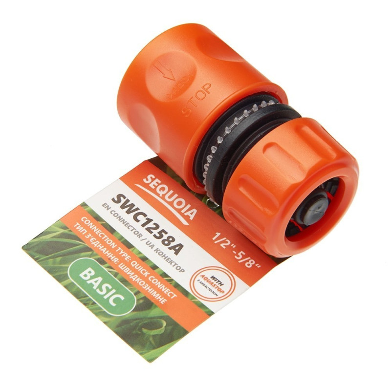 Конектор для шланга SEQUOIA SWC1258A 1/2'-5/8' з аквастопом однокомпонентний пластик 0.03кг