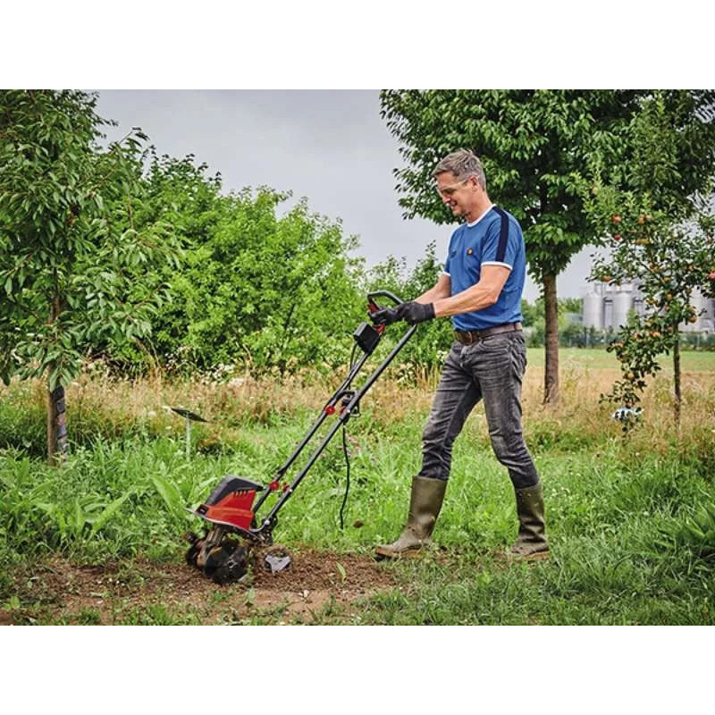 Електричний культиватор Einhell GC-RT 1545 M є легким та надійним садовим інструментом для ефективної обробки ґрунту. Він оснащений двигуном потужністю 1500 Вт, який забезпечує достатню продуктивність і плавність ходу при ширині обробки в 45 см і невеликій вазі культиватора. Швидке просування навіть через твердий ґрунт забезпечується міцними лопатями культиватора. Для безпечної роботи електричний культиватор Einhell GC-RT 1545 M оснащений 2-точковим запобіжним вимикачем, який відключає ножі культиватора, як тільки ви відпускаєте вимикач.