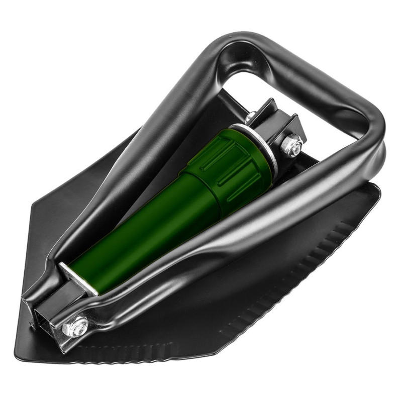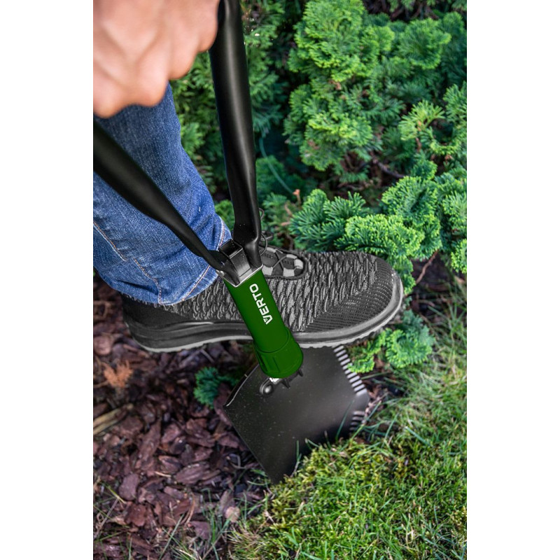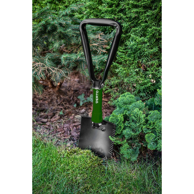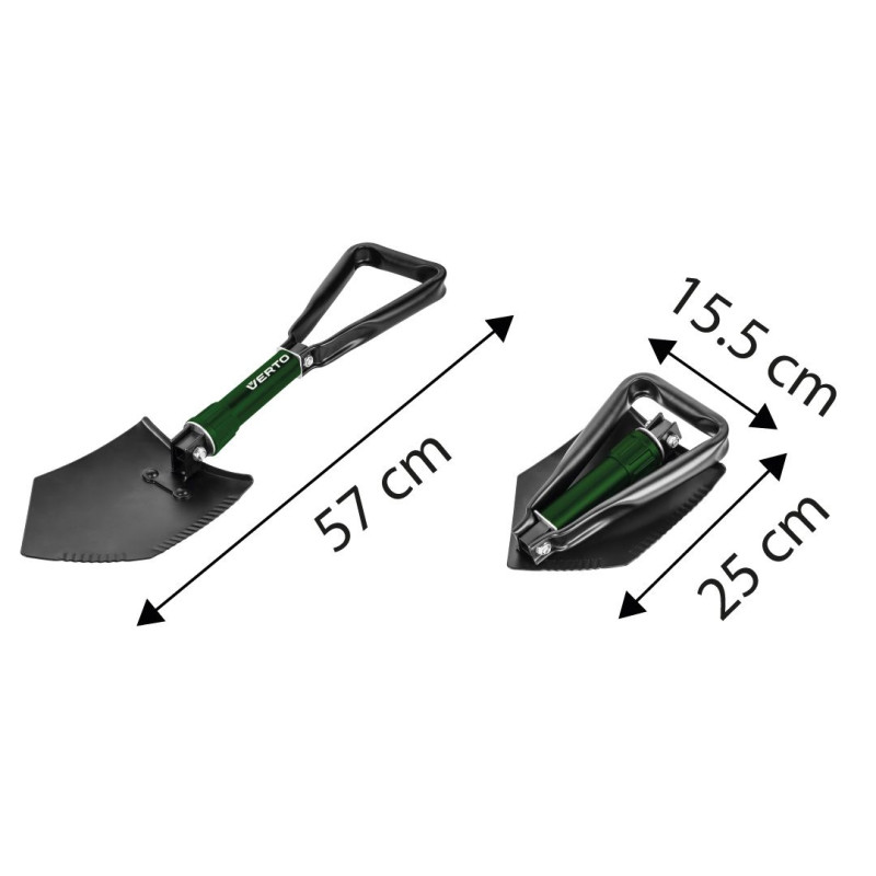 Лопата складна 15G075 від VERTO - практичний інструмент для використання в саду, на присадибній ділянці, в поході і в якості автомобільного обладнання. Складана конструкція дозволяє легко транспортувати та зберігати його. Лопата з початкових розмірів 24,5 х 15,5 см може розкладатися до довжини 58 см. Зручна ручка впливає на комфорт роботи. Лопата марки VERTO рекомендована для універсального використання