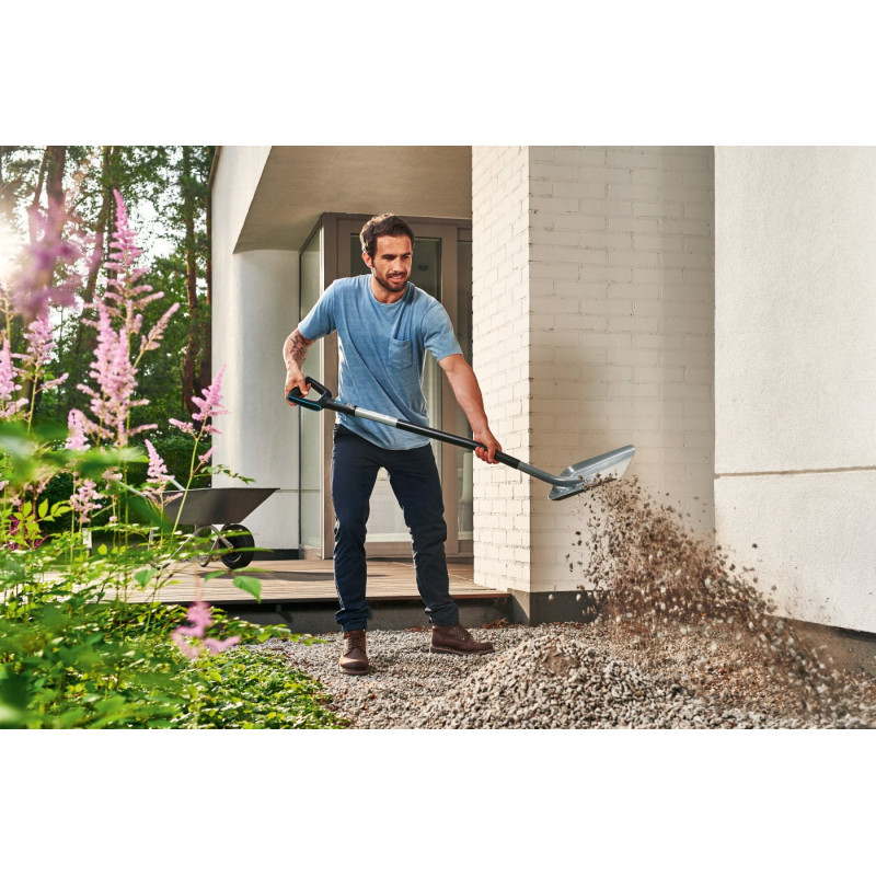 Совкова лопата ERGO™ 40-010 служить для набору і пересипання сипких матеріалів, піску, гравію, землі. Ергономічна рукоятка гарантує правильне і стабільне положення під час роботи, мінімізує напруження м'язів.