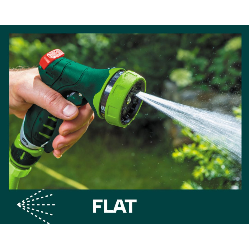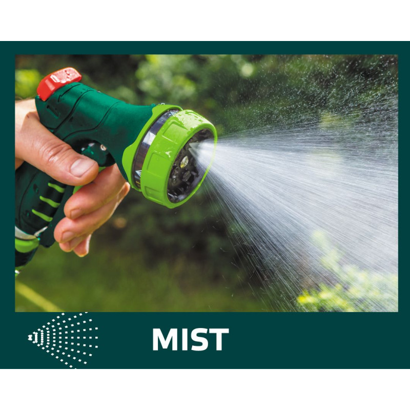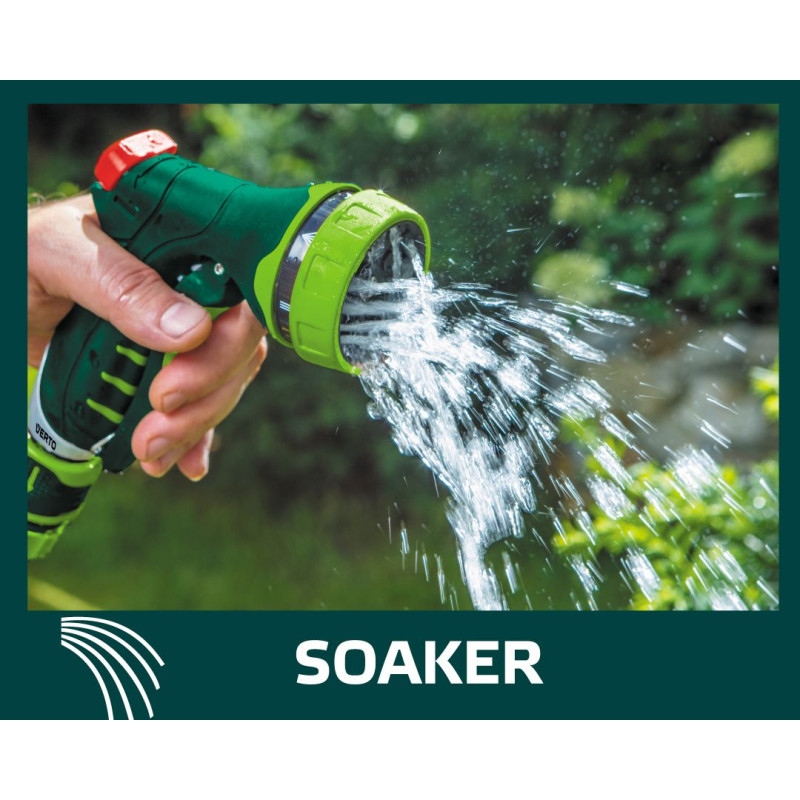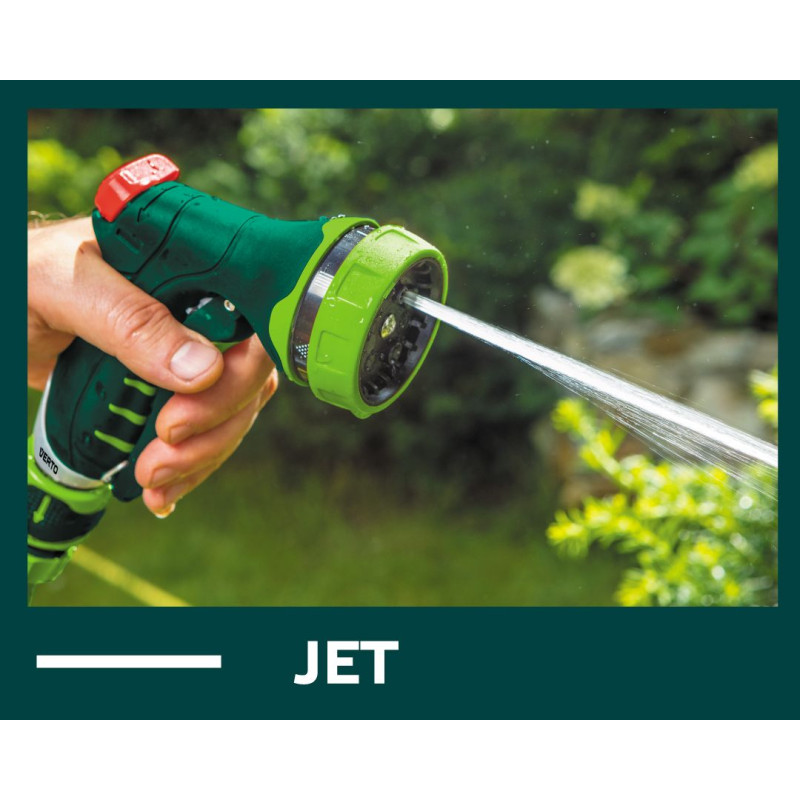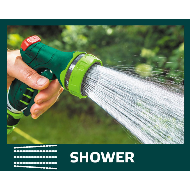 15G713). До набору входять 4 елементи: зрошувач пістолетного типу, 7 функцій, наскрізна муфта 1/2", муфта з автостопом 1/2", адаптер на кран 1/2 ".
