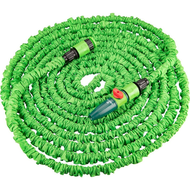 Садовий шланг Verto, 15G890, що розтягується з 7.5 до 22 м - це практичне рішення для садівників, яким важлива економія місця при збереженні високої якості продукту. Буде корисним для догляду як за невеликими, так і великими ділянками, площами. Основним елементом набору є шланг, який розтягується до 22 м. Після підключення води шланг розтягується сам собою, а після відключення - повертається у вихідний стан. Це дуже практична функція, що дозволяє заощадити багато місця в майстерні, літньому будиночку чи підсобному приміщенні.