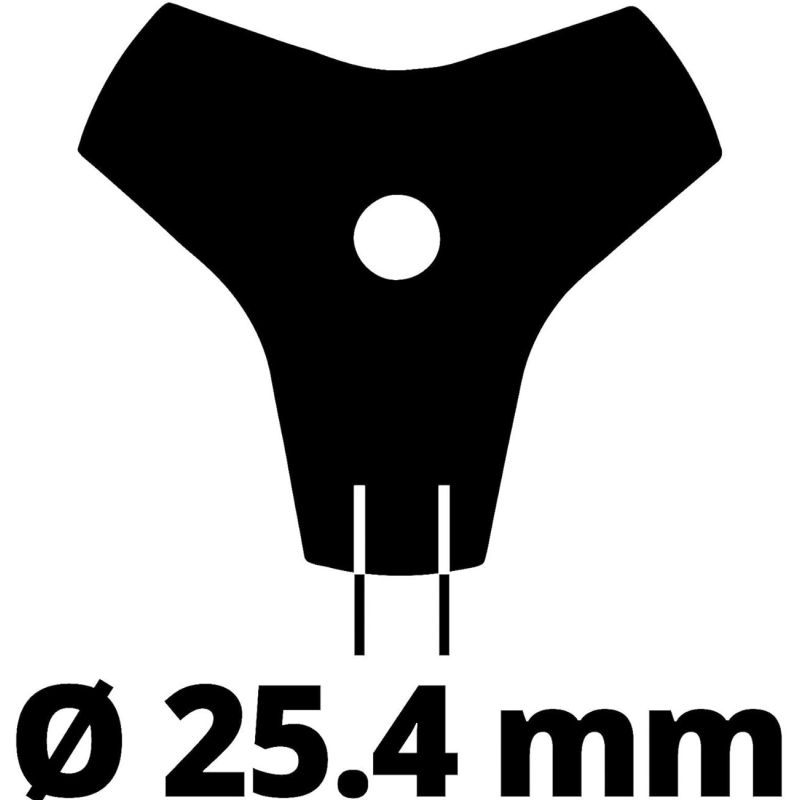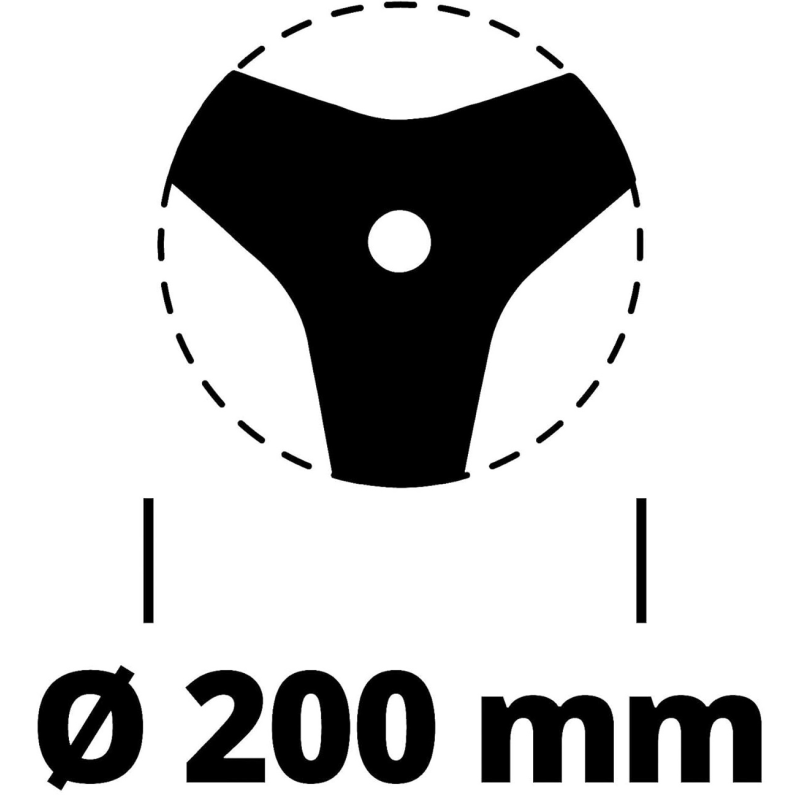 Ніж Einhell Agillo 3405083 з діаметром 200 мм складається з трьох лопатей для ефективного зрізання трави та бур'янів. Металева конструкція забезпечує міцність під час роботи з тримером. Сумісність з моделями Agillo дозволяє швидко змінювати насадки. Цей елемент полегшує догляд за газоном у важкодоступних місцях. Зображення слугує ілюстрацією.