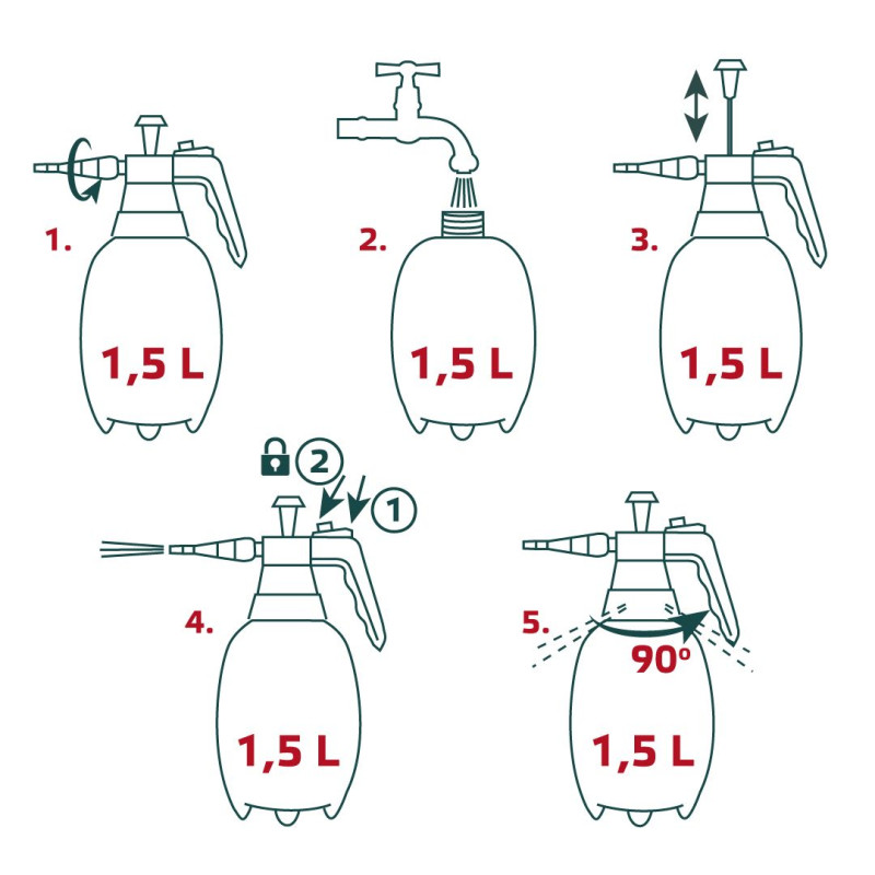 Обприскувач нагнітальний VERTO (арт. 15G502) об’ємом 1.5 літр. Робочий тиск 2-2,5 бар. Блокатор струменя додає комфорту під час праці. Обприскувач допускається застосовувати у діапазоні температур від 0 до +45°C.