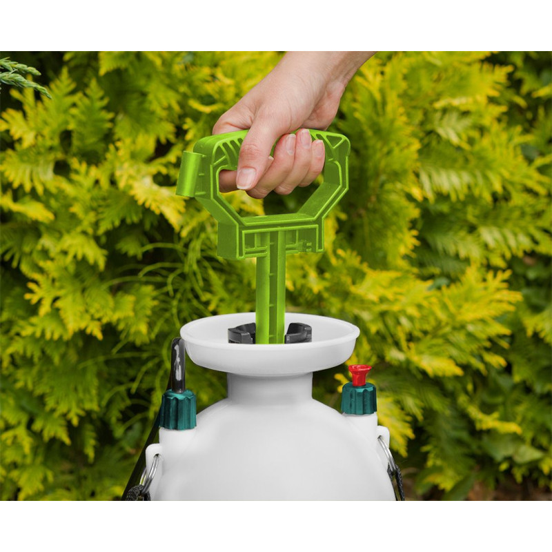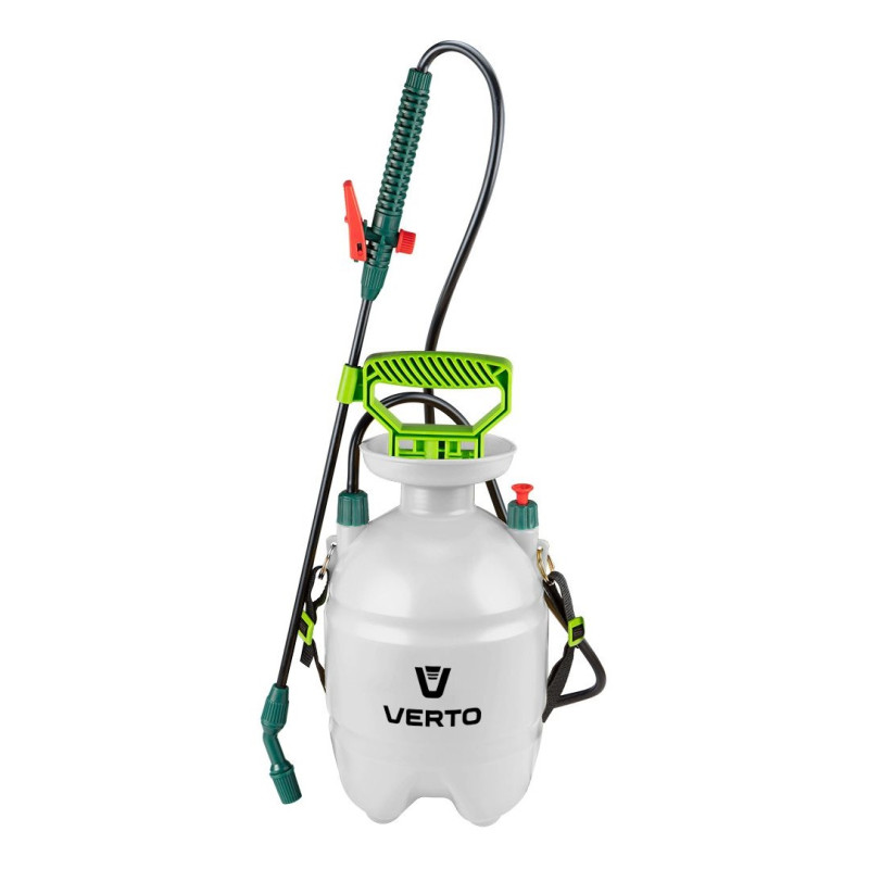 Обприскувач нагнітальний VERTO (арт. 15G504) об’ємом 3 літри. Робочий тиск 2,5-3 бар. Широке гирло сприяє наповнюванню ємності. Додатковий ремінь спрощує розміщення обприскувача на плечі, а блокатор струменя підвищує комфорт праці. Клапан забезпечує безпеку під час експлуатації. Обприскувач допускається застосовувати у діапазоні температур від 0 до +45°C.